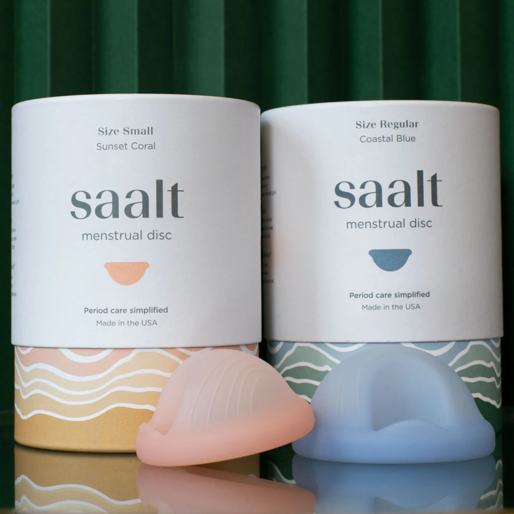 Đĩa nguyệt san Saalt (Saalt Disc) là sản phẩm menstrual disc tái sử dụng cao cấp từ Mỹ, làm từ silicone y tế 100% (medical-grade silicone), không BPA, latex hay chất độc hại, an toàn và thân thiện với môi trường. Khác với cốc nguyệt san (cup), đĩa Saalt nằm cao hơn ở vòm âm đạo (vaginal fornix), quanh cổ tử cung, thu thập kinh nguyệt mà không dựa vào lực hút nên rất thoải mái, ít gây áp lực.